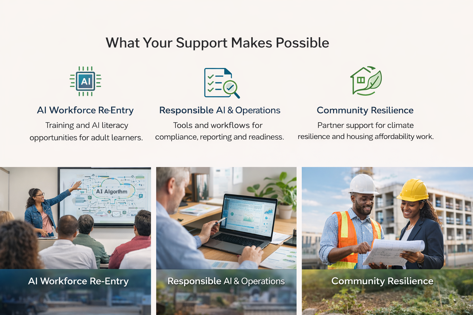 Your donation helps JSERV build workforce re-entry training, responsible AI readiness, and operational support for community-centered initiatives across the DMV.